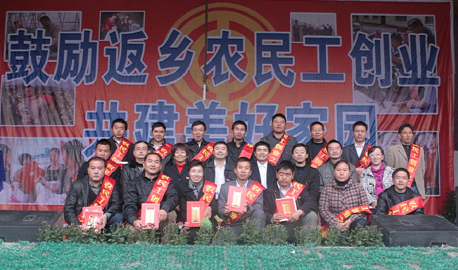 龙学精宣读了授予毛洪波等16位同志为“绥阳县返乡农民工创业之星”的通报,并颁发奖金和荣誉证书。