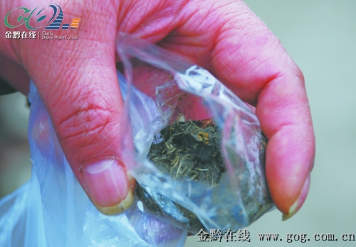 但在灌木丛中穿行了约7公里,却始终没有发现蛛丝马迹。好在在6只羊被咬死的现场,发现了猛兽的粪便,李刚通过气味和外观初步判定,这是豹猫所排粪便。而且,粪便证明,出现的豹猫有两只,体重约在四、五十斤。李刚提取了粪便,打算送往遵义作进一步分析认定。