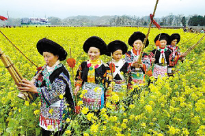 贵州贵定县有个新景区叫金海雪山,就位于贵定县盘江镇境内。景区内辖音寨、落海、竹林堡、麦懂等十一个自然村寨,是典型的布依民族村寨群落,被称为“中华布依第一寨”。景区内种有万亩油菜和千顷李树,每年3~4月,油菜花、李花盛开,满坝油菜花胜似“金海”,满山李花,宛如“雪山”,交相辉映形成“金海雪山”的壮观美景。