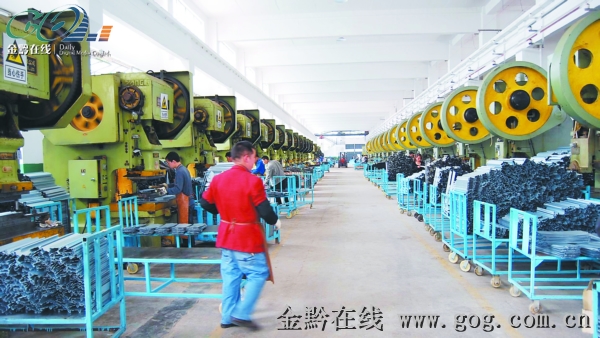 遵义风华机电配件有限公司绥阳分公司钣金车间正在紧张生产。该企业于2011年12月底完成设备搬迁调试投入批量生产,现有315T液压机2台、各型号压力机42台等主要设备,员工66人。主要承接贵州海尔和重庆海尔冰箱钣金件的生产,以及烤烟机械、海信制冷配件等钣金件的生产。目前已具备10000套(3万余件)/天的钣金件生产能力,年产值近0.5亿元。