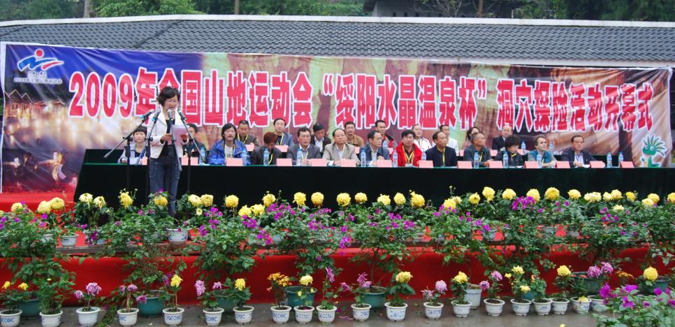 11月9日,2009年全国山地运动会洞穴探险穿越活动在中华第一长洞——位于绥阳县温泉镇境内的双河洞国家地质公园景区开赛。国家体育总局登山运动管理中心主任李致新、省体育局机关党委书记姚元君、法国洞穴救援联盟专家让·波塔兹,绥阳县有关领导出席“洞穴探险”开幕式。